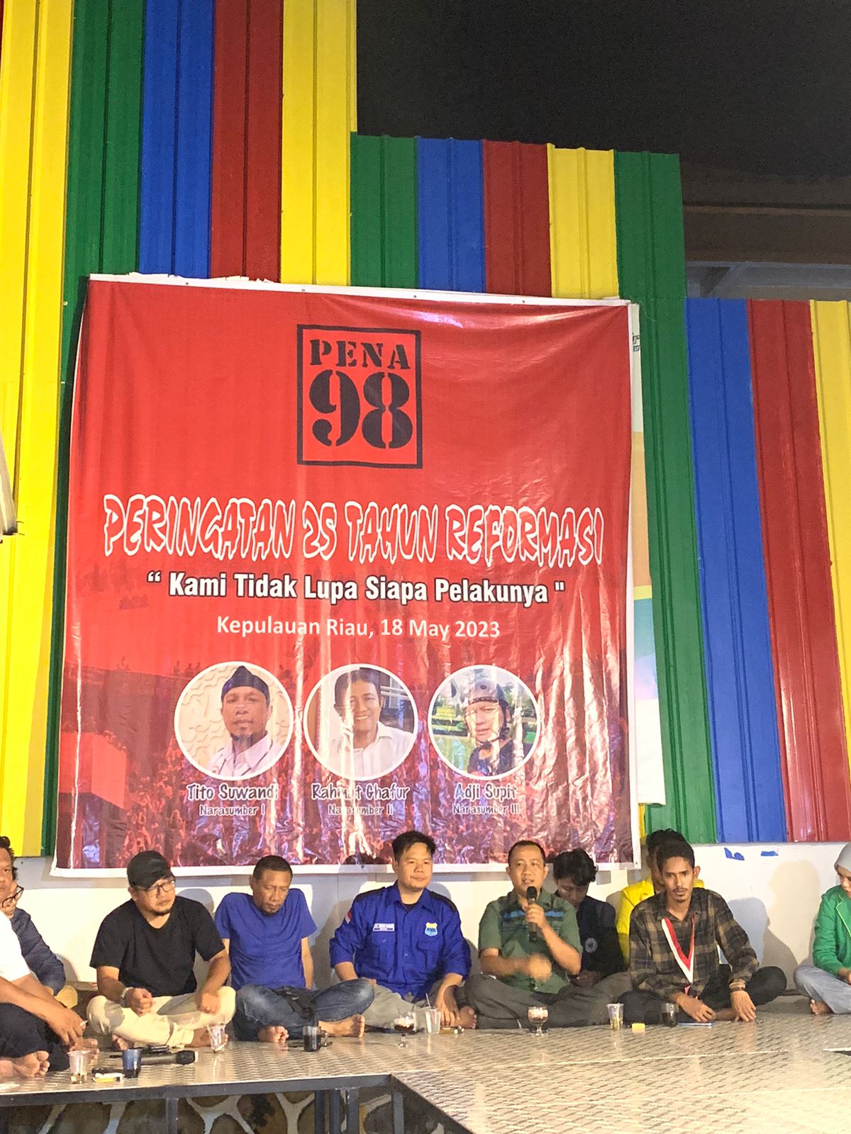 Infotoday.id. Batam- Persatuan Nasional Aktivis (PENA) 98 Provinsi Kepulauan Riau menggelar dialog interaktif Refleksi 25th Reformasi bersama tokoh Pemuda dan aktivis mahasiswa dari perwakilan 6 Perguruan Tinggi di Kota Batam dengan tema “Kami tidak lupa siapa pelakunya” bertempat di Posko PENA 98 Tiban, Kota Batam, Kepri, pada Kamis (18/5/2023).