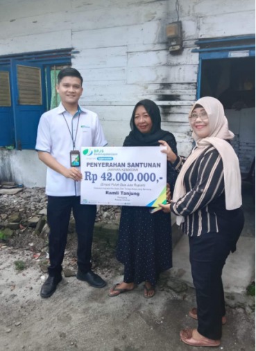 Penyerahan dilakukan secara simbolis di berikan kepada Rubiah Damanik sebagai Istri ahli waris. Almarhum merupkan peserta dan terdaftar program Bukan Penerima Upah (BPU) BPJamsostek selama 6 bulan menjadi peserta dari bulan agustus tahun 2022. Ahli waris menerima Santunan Jaminan Kematian sebesar Rp42 juta.