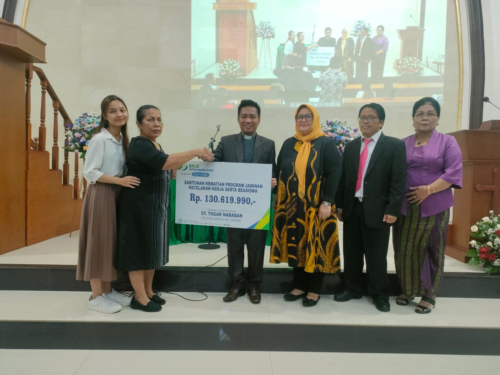 Acara yang dilaksanakan pada Minggu 18 Juni 2023 tersebut dihadiri langsung oleh ahli waris, pengurus, dan jemaat gereja. Santunan diserahkan langsung oleh Kepala BPJAMSOSTEK Pematangsiantar Inggrid Maya Sari didampingi oleh Pimpinan Gereja HKI Cawang.