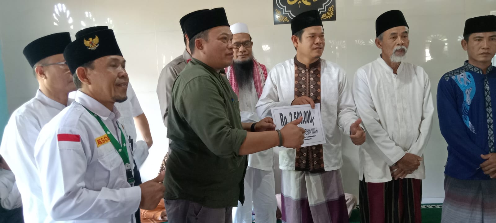 Kemudian Bupati Seluma menyerahkan bantuan dari Pemerintah Kabupaten Seluma kepada pengurus Masjid At Mutakin berupa uang pembangunan masjid sebesar Rp.2.500.000.