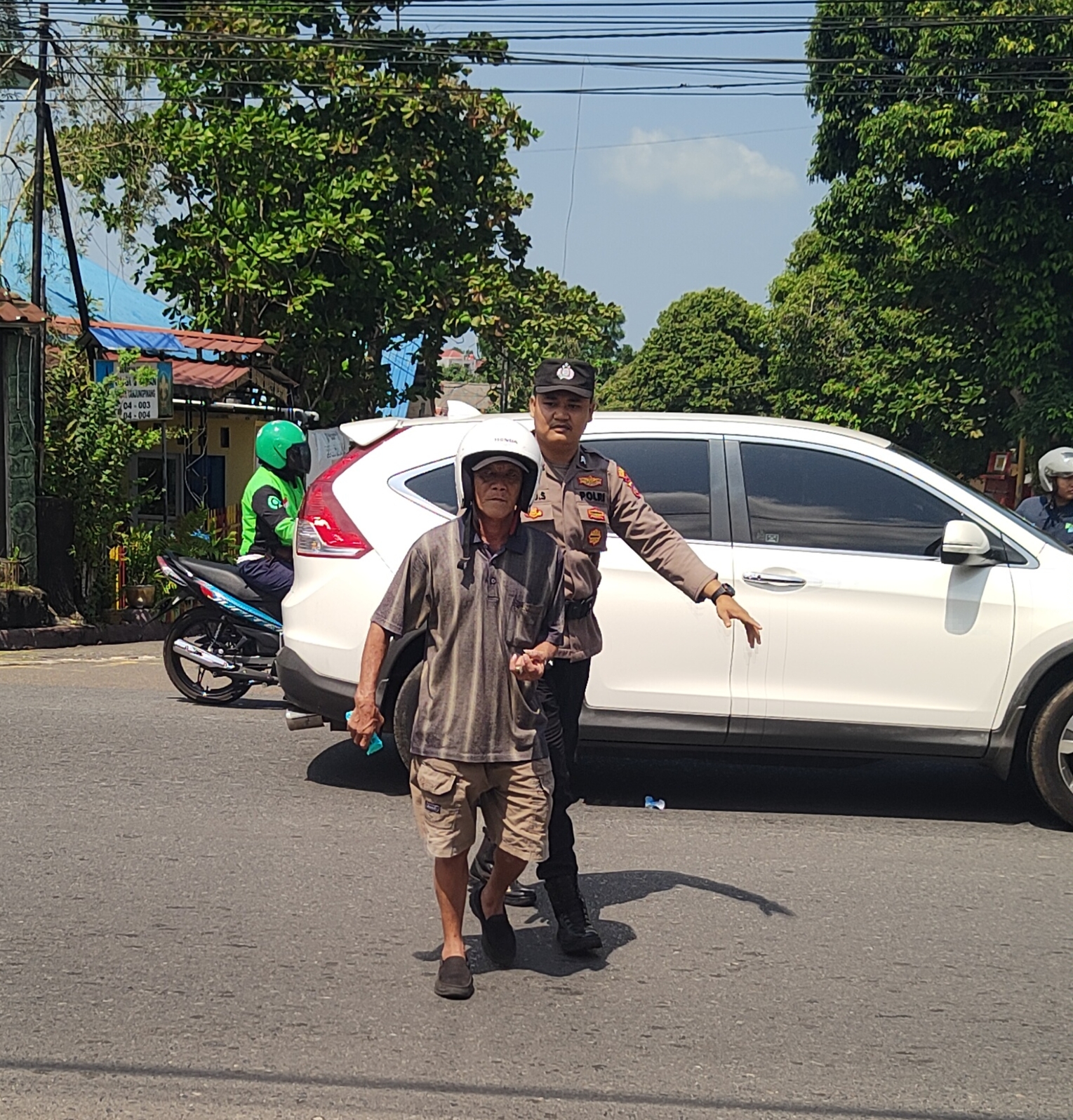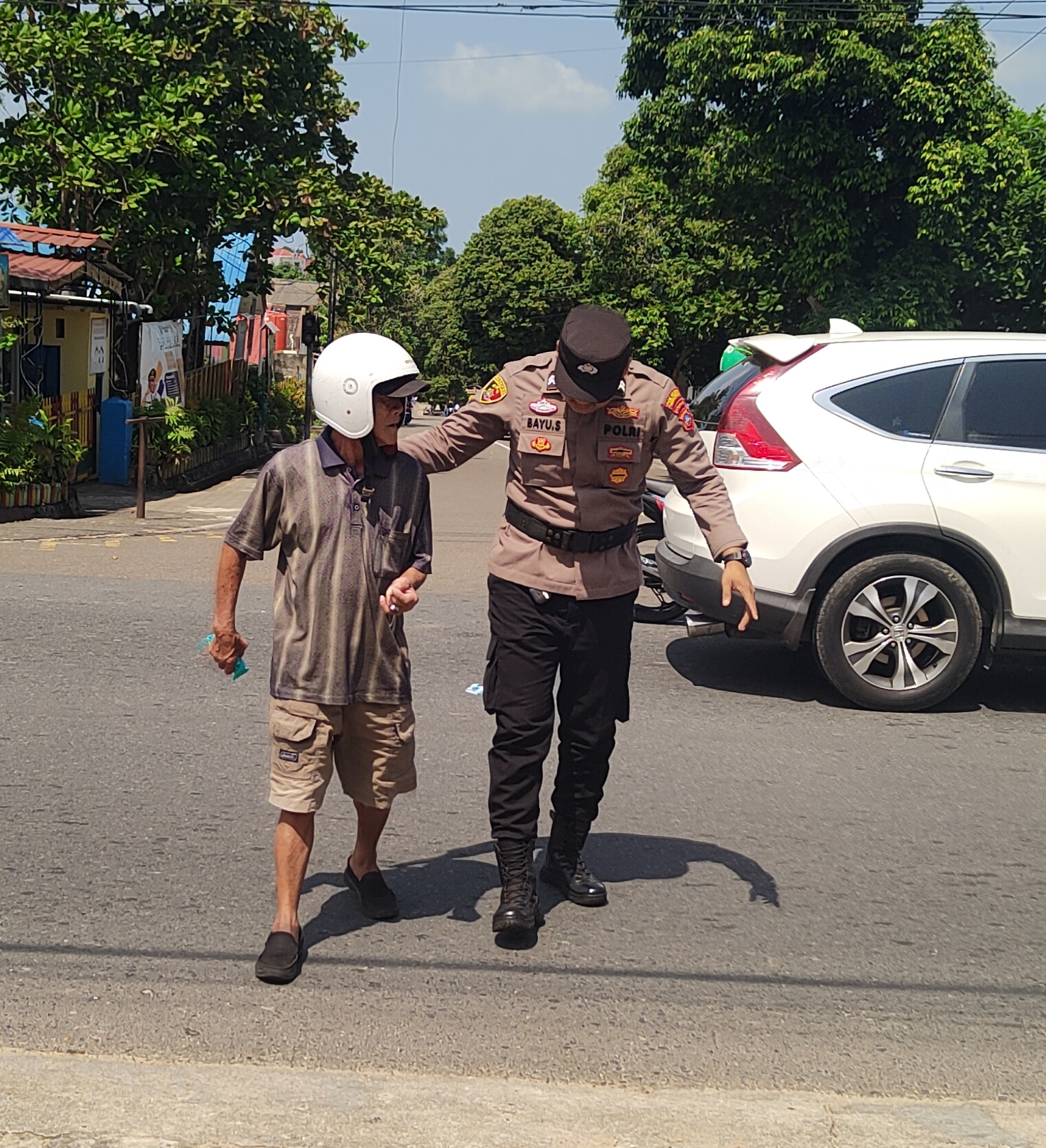 Setelah salah satu pengendara tersebut pulang, Briptu Bayu Septiadi bukan langsung pulang, ia juga membantu memperbaiki motor Supra fit yang diketahui dikendarai oleh warga Jalan Pompa Air tersebut.