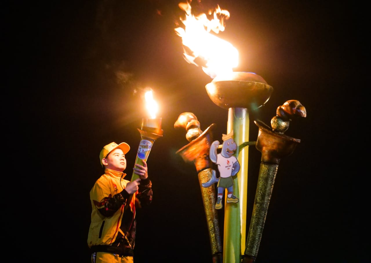Sebelum penyalaan Api Obor, Andri terlebih dulu parade keliling ke tengah lapangan samb berlari-lari kecil. Pembukaan juga dimeriahkan dengan pembukaan tarian mak yong, devile para kontingen serta pertunjukan dance opening yang melibatkan sekitar 50 penari.