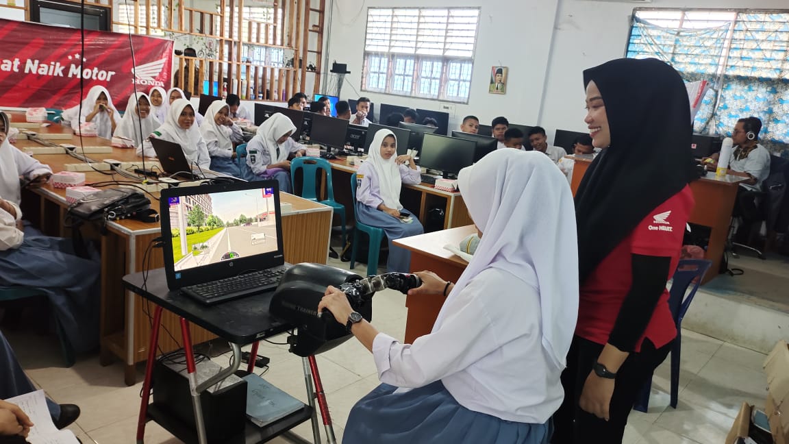 Kegiatan tersebut langsung menggunakan tes simulator sepeda motor yang di bawa oleh team Honda anugrah.