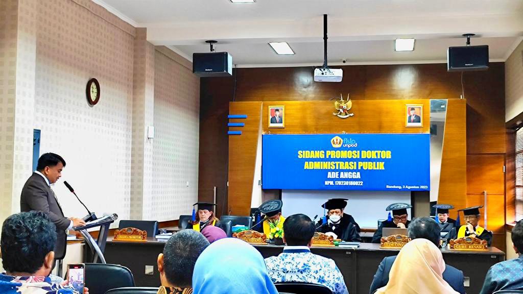 Ia mendapat predikat lulus dengan sangat memuaskan. Ade Angga menjalani sidang promosi program Doktor Administrasi Publik di Unpad Bandung pada Kamis (3/8) lalu.