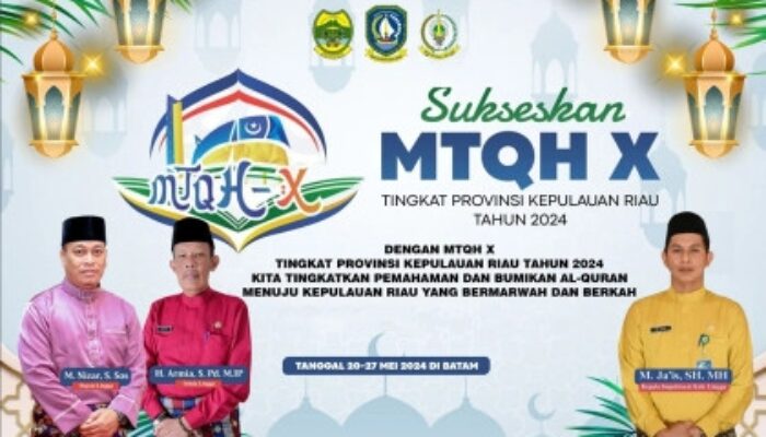 Lingga Infotoday.id – Musabaqah Tilawatil Quran dan Hadist (MTQH) ke-X tingkat Provinsi Kepulauan Riau resmi dilaksanakan di Kota Batam mulai tanggal 20 hingga 27 Mei 2024.
