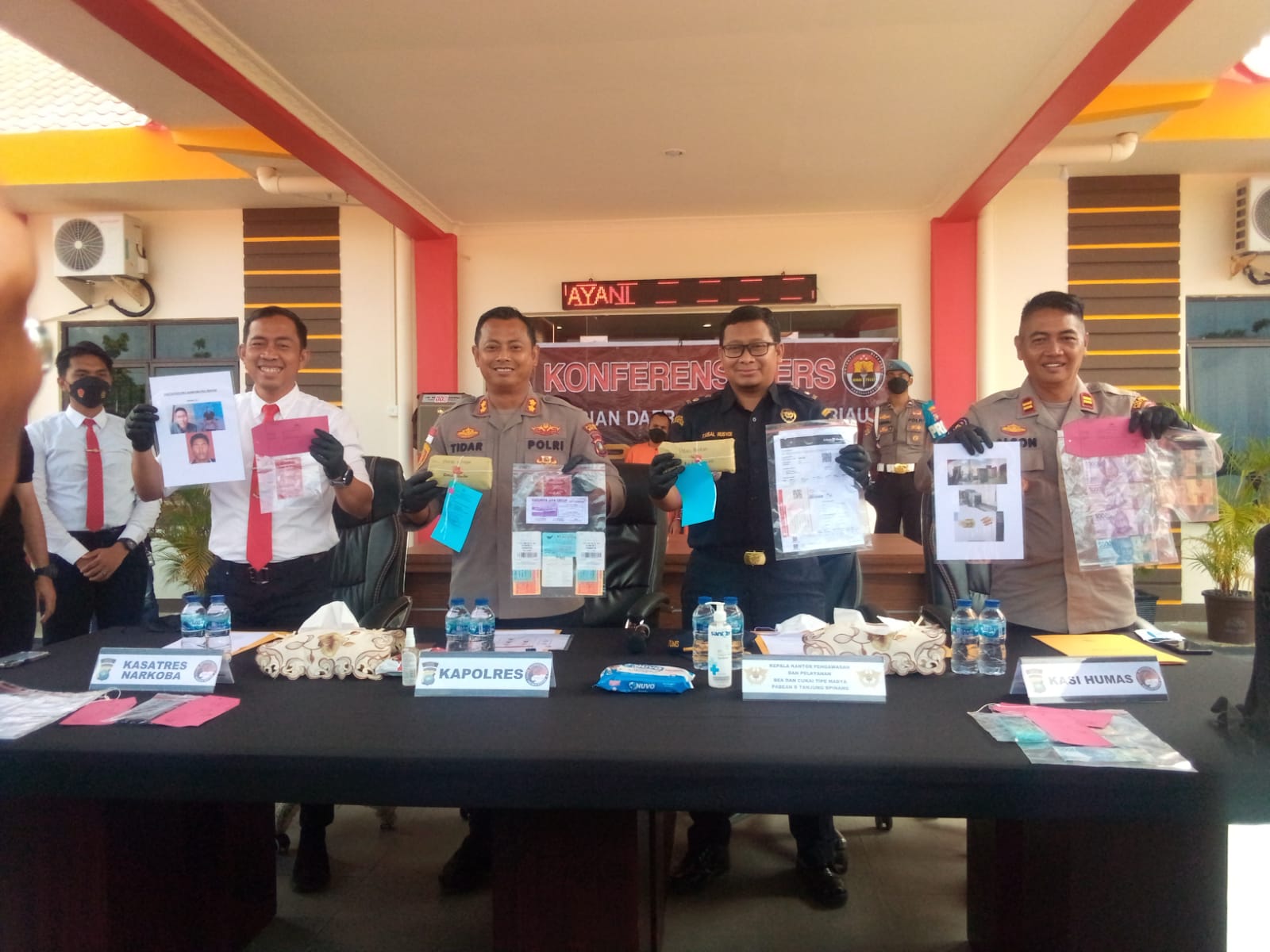 Kapolres Bintan AKBP Tidar Wulung Dahono didampingi Kasatresnarkoba Tanjungpinang AKP Iwan Novriawan, Kasie Humas dan KPBC Pabean Type B Tanjungpinang menyampaikan bahwa pihaknya mendapatkan pelaporan dari pihak KPBC type madya Pabean B Tanjungpinang saat melakukan pengawasan barang atas keberatan penumpang kapal Pelni KM Umsini dengan rute Bintan Jakarta Makassar di Pelabuhan Sri Bayintan Kijang.