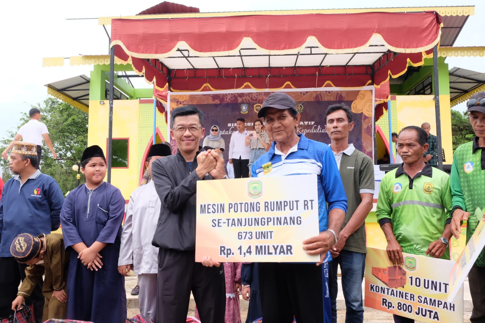 Hasan menyerahkan 10 unit kontainer sampah, kendaraan dinas berupa 2 unit pick up, mesin potong rumput sebanyak 673 buah untuk seluruh RT/RW se-Kota Tanjungpinang, alat-alat kebersihan dalam mendukung pelaksanaan gotong royong untuk 4 Kecamatan dan 18 kelurahan serta penambahan insentif sebesar Rp300 ribu bagi petugas kebersihan setiap bulannya.