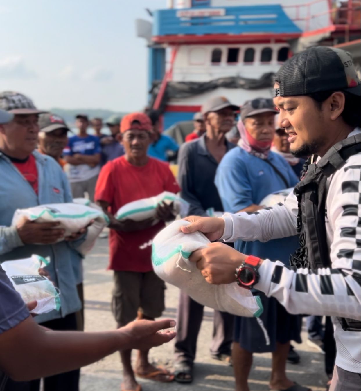 Tampak juga Badan Amil Zakat Nasional (Baznas) Kota Tanjungpinang bersama Kegiatan Razia Perut Lapar menyasar warga di Pelantar 2 Tanjungpinang dan Kampung Kolam Jl. Salam Tanjungpinang, yang langsung menyentuh sasaran kepada para buruh, nelayan dan warga pelantar tanpa ada kegiatan seremonial apapun.(27/03/2024).