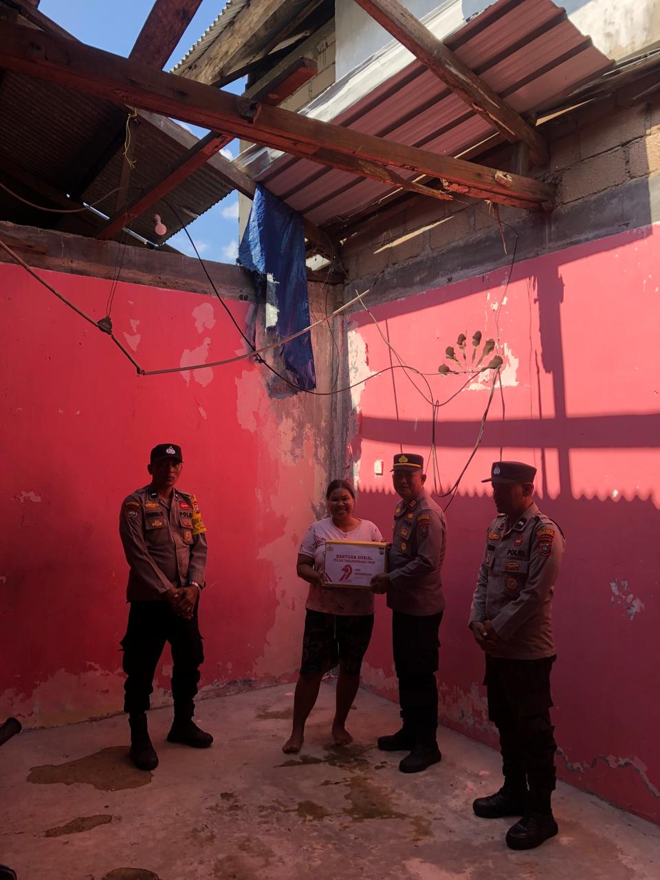 Foto: Kapolresta Tanjungpinang Kombes Pol. Haman Wahyudi melalui Kapolsek Tanjungpinang Timur, AKP Sugiono saat menyerahkan bansos berupa sembako kepada warga yang terdampak angin kencang.