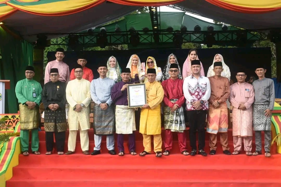 Piagam penghargaan MURI diserahkan langsung kepada Bupati Nizar di halaman Kantor Bupati Lingga, menegaskan bahwa pencapaian ini adalah prestasi luar biasa dalam pengembangan kebudayaan di Pemkab Lingga.