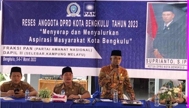 Suprianto yang merupakan Politisi Partai Amant Nasional (PAN) ini dalam reses melibatkan masyarakat dalam mengambil keputusan persoalan-persoalan yang sedang terjadi ditengah-tengah masyarakat Kota Bengkulu sebagai wakil rakyat.