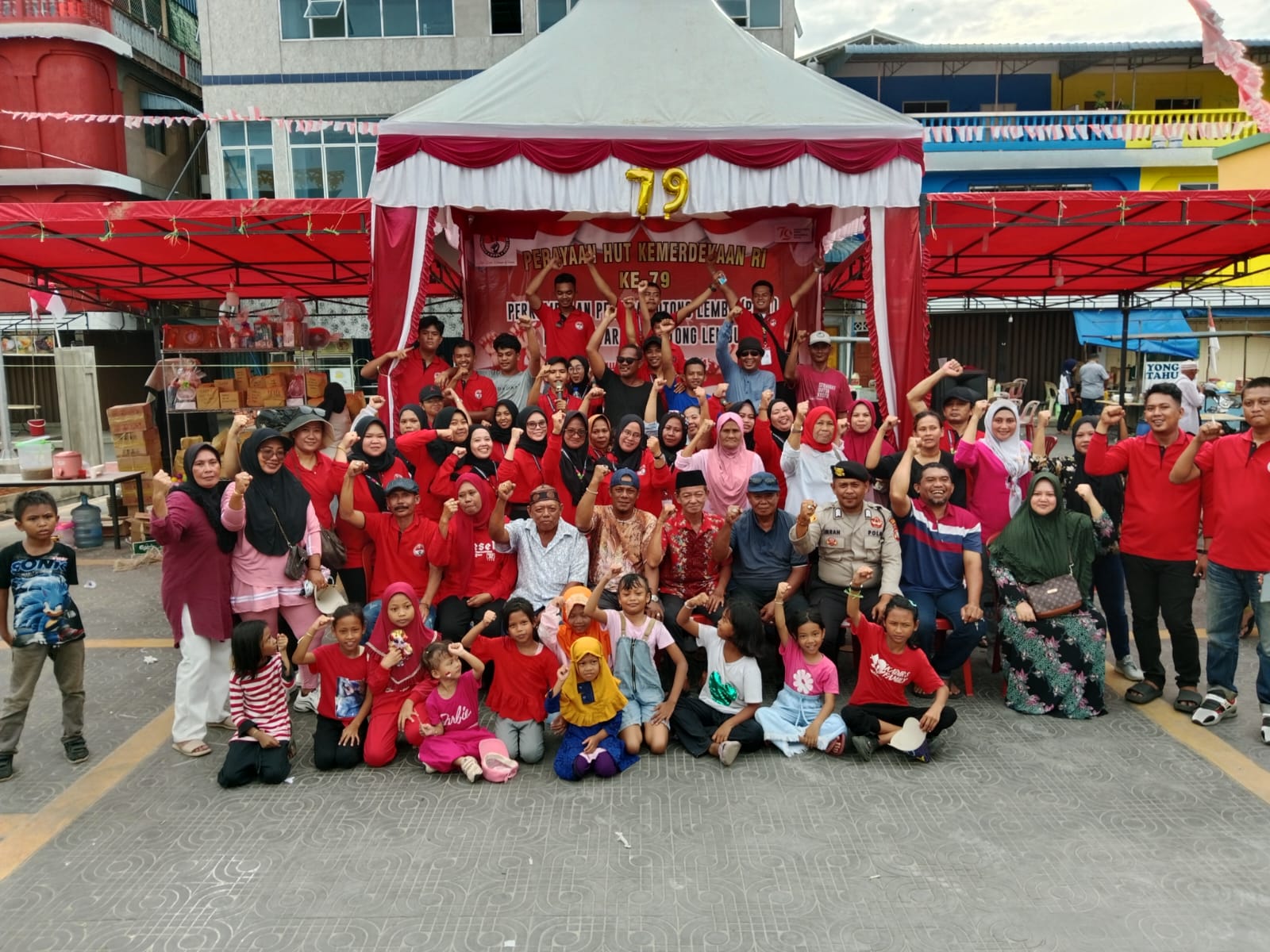 Perayaan HUT kemerdekaan RI ke-79 di kawasan pusat kuliner potong lembu ini cukup meriah dan penonton tumpah ruah hingga di sejumlah ruko yang bercorak warna-warni.