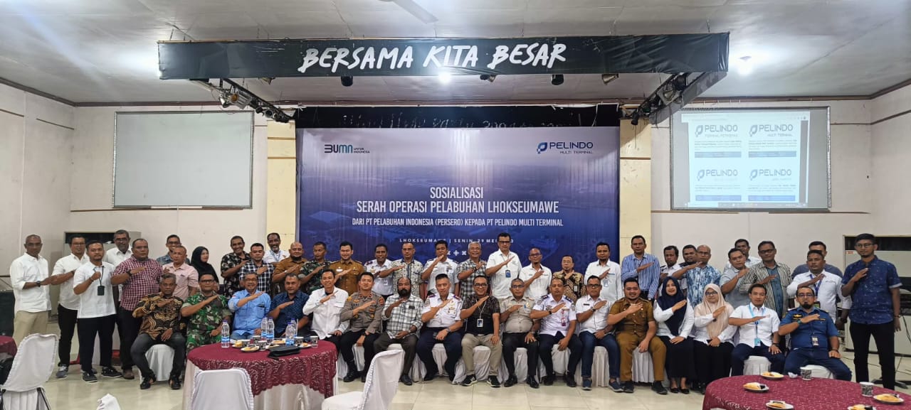 Infotoday.id. Lhokseumawe – PT Pelindo Multi Terminal (SPMT), sebagai salah satu Sub-Holding PT Pelabuhan Indonesia (Persero) yang bergerak di bidang pelayanan operasional terminal non-petikemas melakukan kegiatan Sosialisasi Rencana Pengoperasian Terminal Pelabuhan di Lhokseumawe di Lido Graha Hotel, Lhokseumawe, pada Senin 29 Mei 2023.