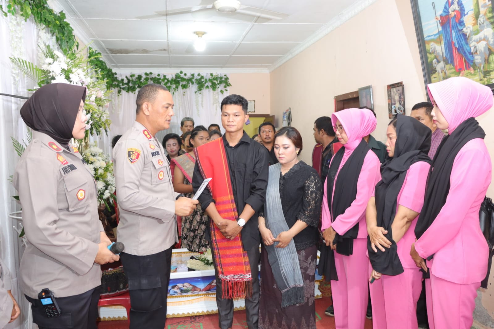 Infotoday.id, Asahan. Kapolres Asahan AKBP Rocky H Marpaung, SH, SIK, MH bersama PJU Polres Asahan berserta Personil Polres Asahan melayat kerumah duka, Istri almarhum Aiptu Nimrot Siahaan, sebagai wujud empati dalam mengungkapkan belasungkawa kepada anak dari Hesty Wati dan keluarga, semoga di berikan ketabahan dan keiklasan atas kepergian sang ibunda, Kamis (18/05/2023).